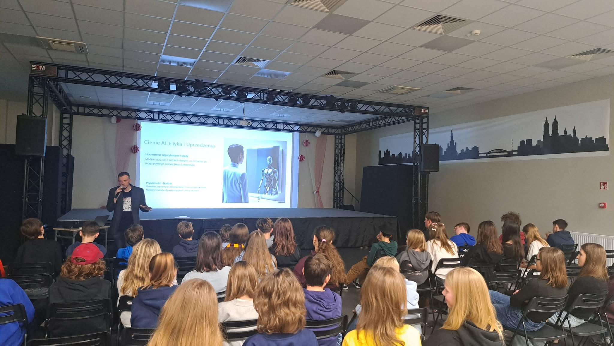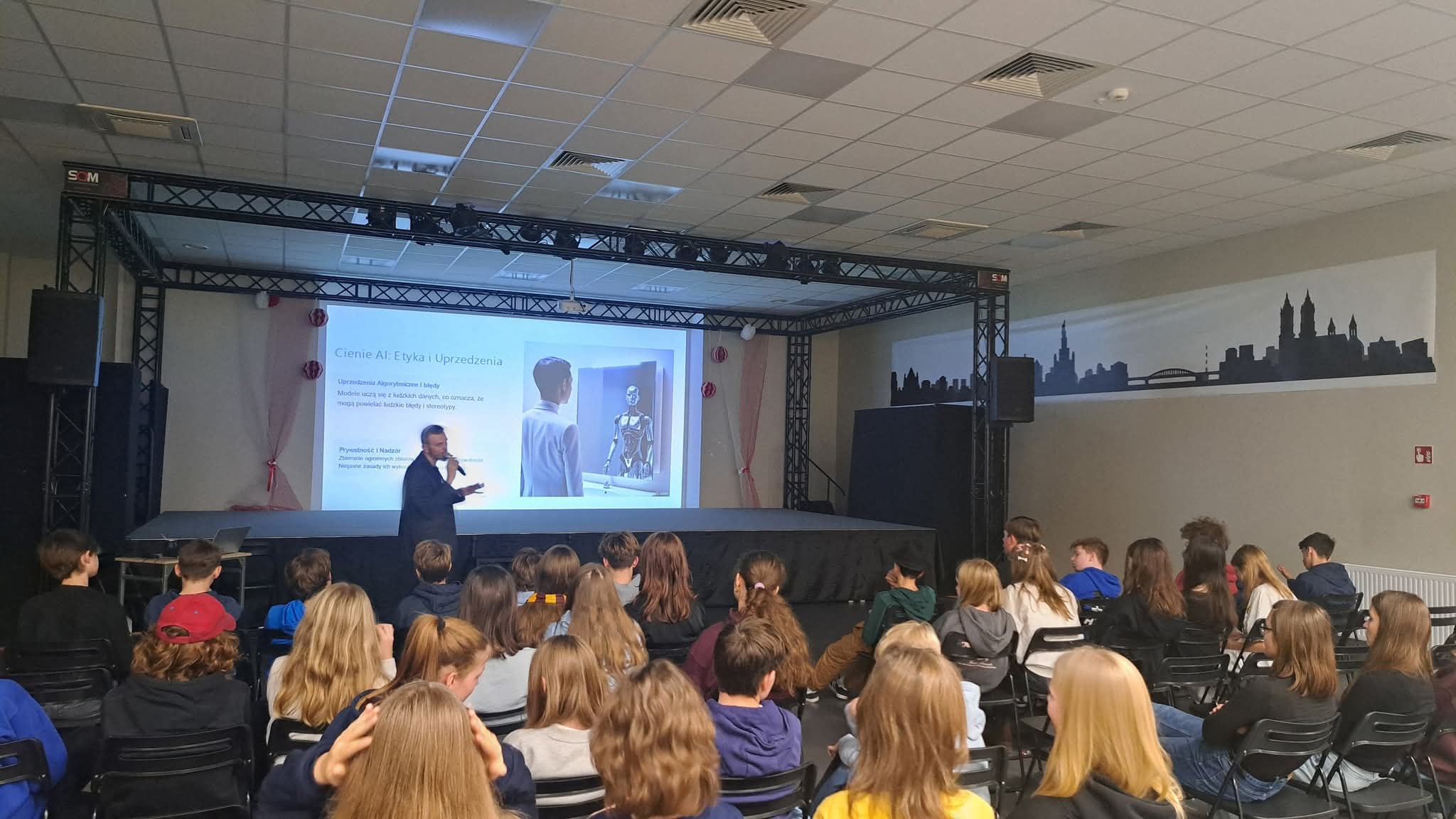 W trakcie wydarzenia uczestnicy brali udział w wykładzie o tym, jak AI wpływa na nasze życie i czy przyszłość z inteligentnymi technologiami będzie dla nas wyzwaniem, czy może otworzy drzwi do niesamowitych możliwości.