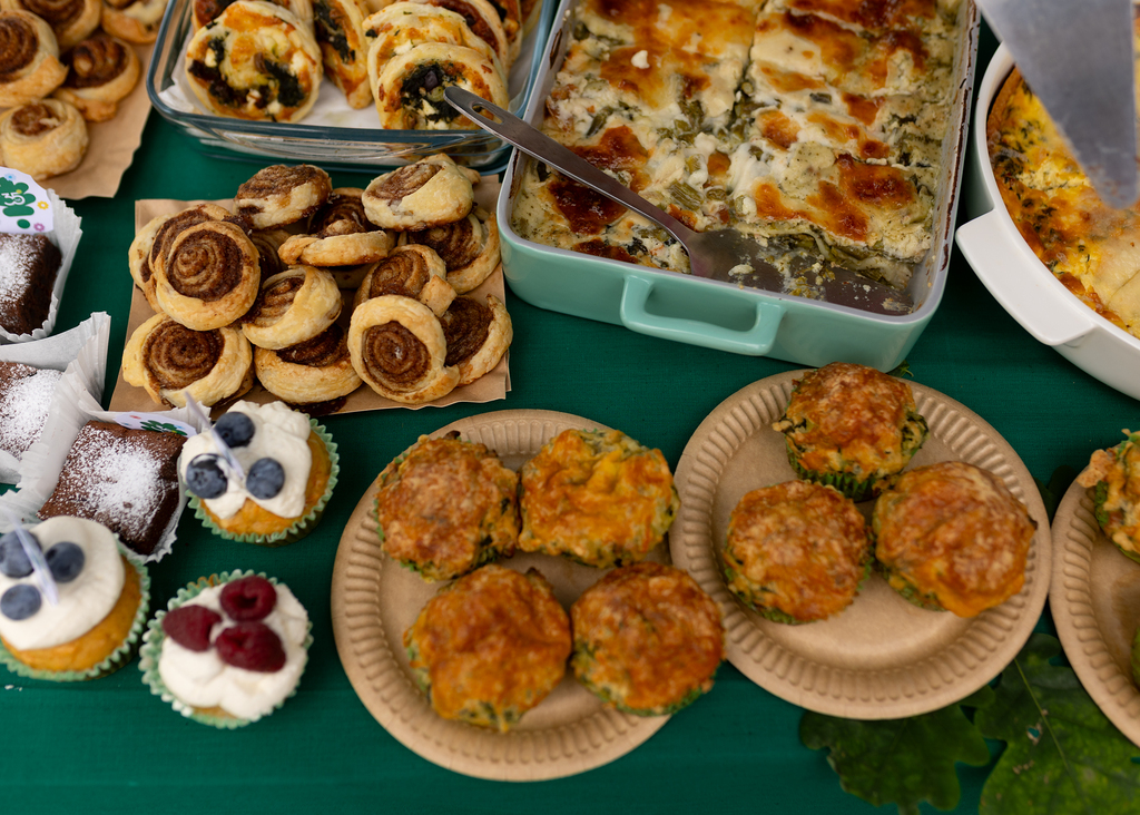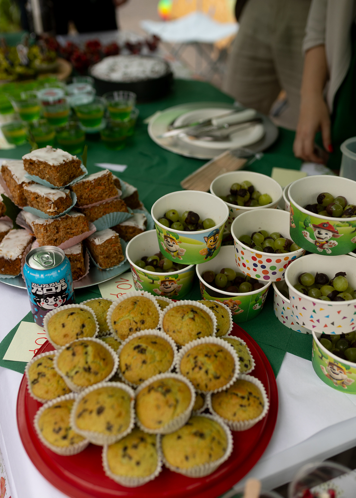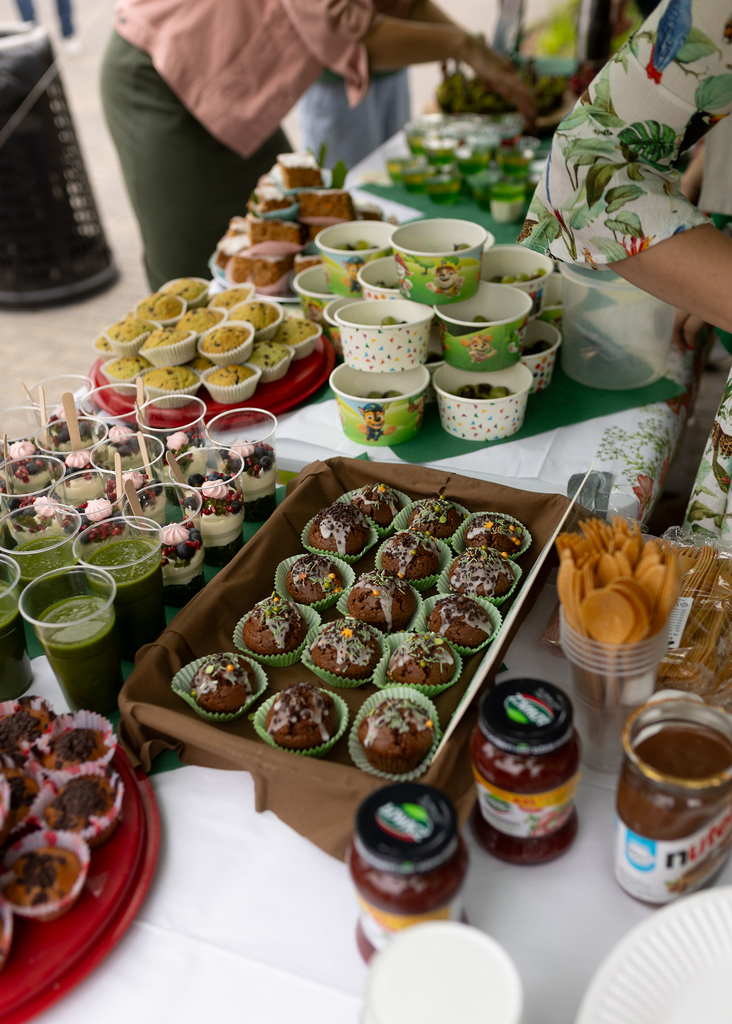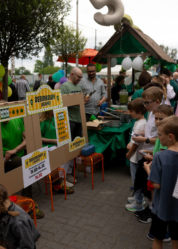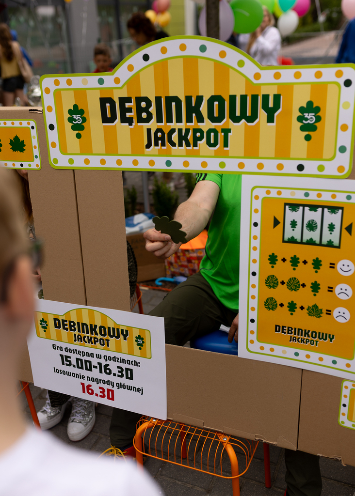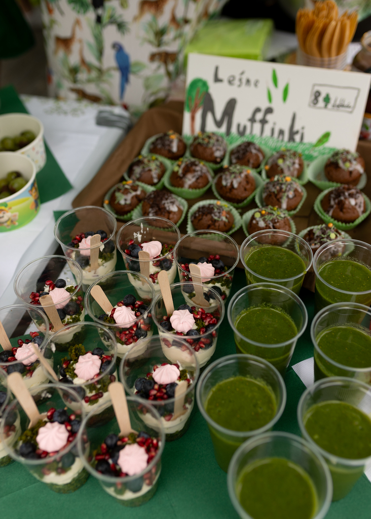 Rodzice przygotowali cudne stoiska ze smakołykami słodkimi i wytrawnymi. W dekoracjach stoisk dominował kolor zielony i dębowe liście, pojawiło się mnóstwo kreatywnych pomysłów, jak np. doniczki mięty na 35-lecie Dębinki z napisem: Poczuj miętę do Dębinki.