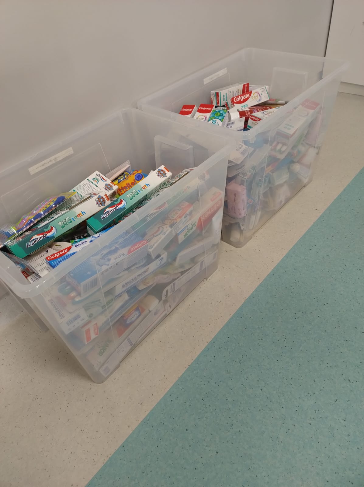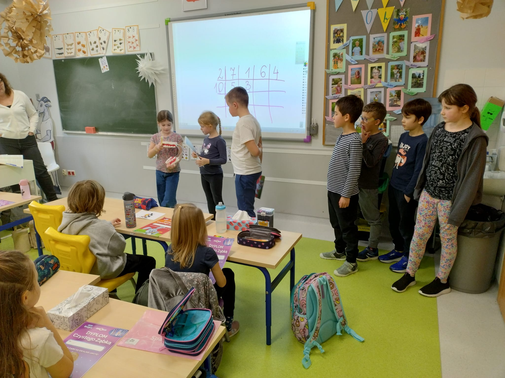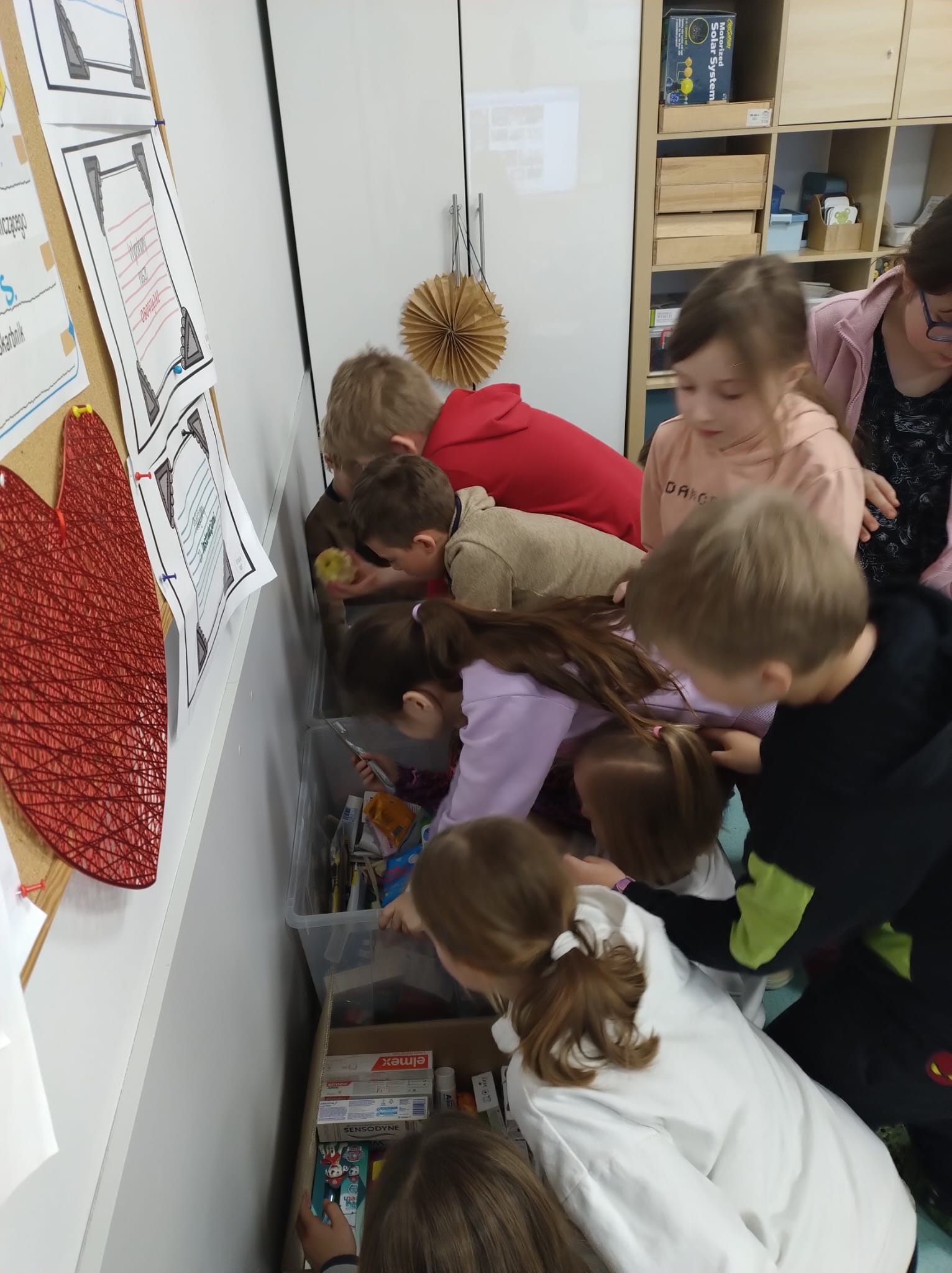 W dniach 04.02.-14.02.25 uczniowie klasy 2C zorganizowali zbiórkę past, szczoteczek i mydeł dla swoich afrykańskich kolegów- podopiecznych fundacji Redemptoris Missio. Wykonywali plakaty i kolorowanki, ozdabiali kartony, odwiedzali młodsze klasy, by w ramach spotkań zachęcać do wsparcia inicjatywy. Aby zwiększyć skuteczność swoich oddziaływań, rozdawali dyplomy „Ambasadorów Białego Uśmiechu”, wykonywali instruktaż mycia zębów, tworzyli elementy stomatologicznej scenografii. Udało się! Zebraliśmy 5 kartonów wypełnionych po brzegi potrzebnymi akcesoriami! Kłaniamy się więc nisko wszystkim, którzy włączyli się w naszą akcję i otworzyli swoje serca! Pamiętajmy – DOBRO wraca
