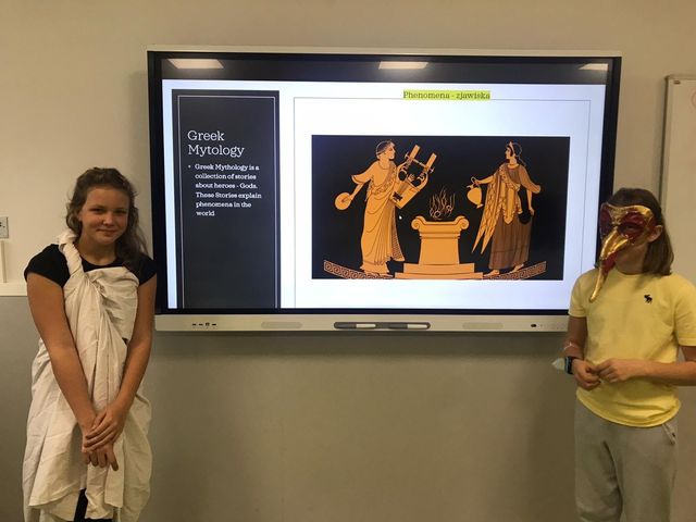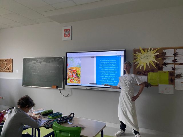 Podczas lekcji, w klasach IV – VII przeprowadzane były lekcje o tematyce odnoszącej się do greckiej historii i geografii. Ponadto, uczniowie klas VII tańczyli najbardziej popularny grecki taniec sirtaki (znany z filmu Zorba). Prezentowali również przed swoimi klasami wcześniej przygotowane prezentacje w języku angielskim na temat Grecji. Mogliśmy zatem ćwiczyć swoje umiejętności językowe. Uczniowie klas VI odwiedzali młodsze klasy i opowiedzieli o greckich zwyczajach, a w sali audiowizualnej odbył się wykład przygotowany przez jednego z uczniów klas 6.